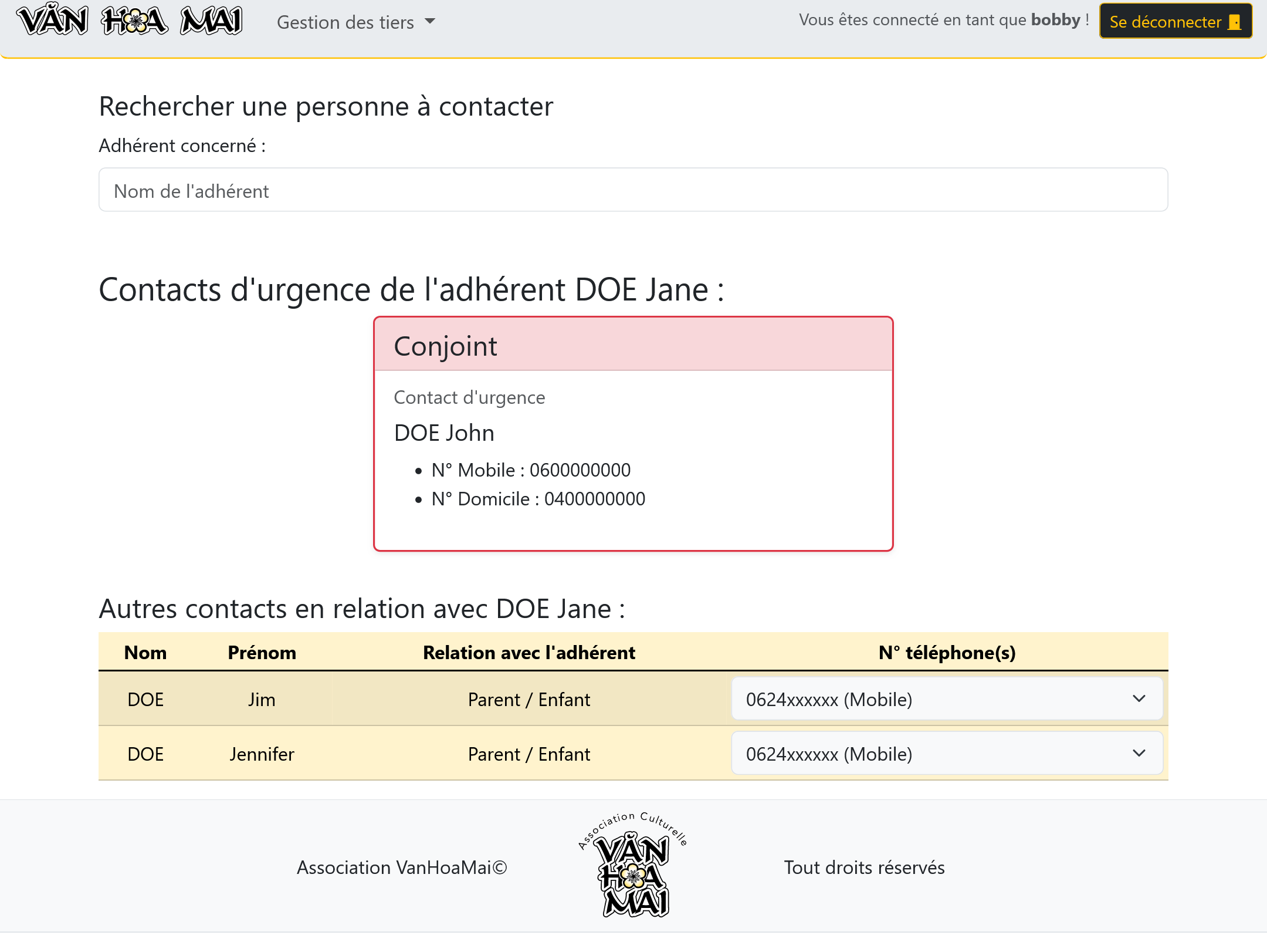 - Création d'une interface d'accès aux contacts relatifs à une personne, en cas d'urgence.