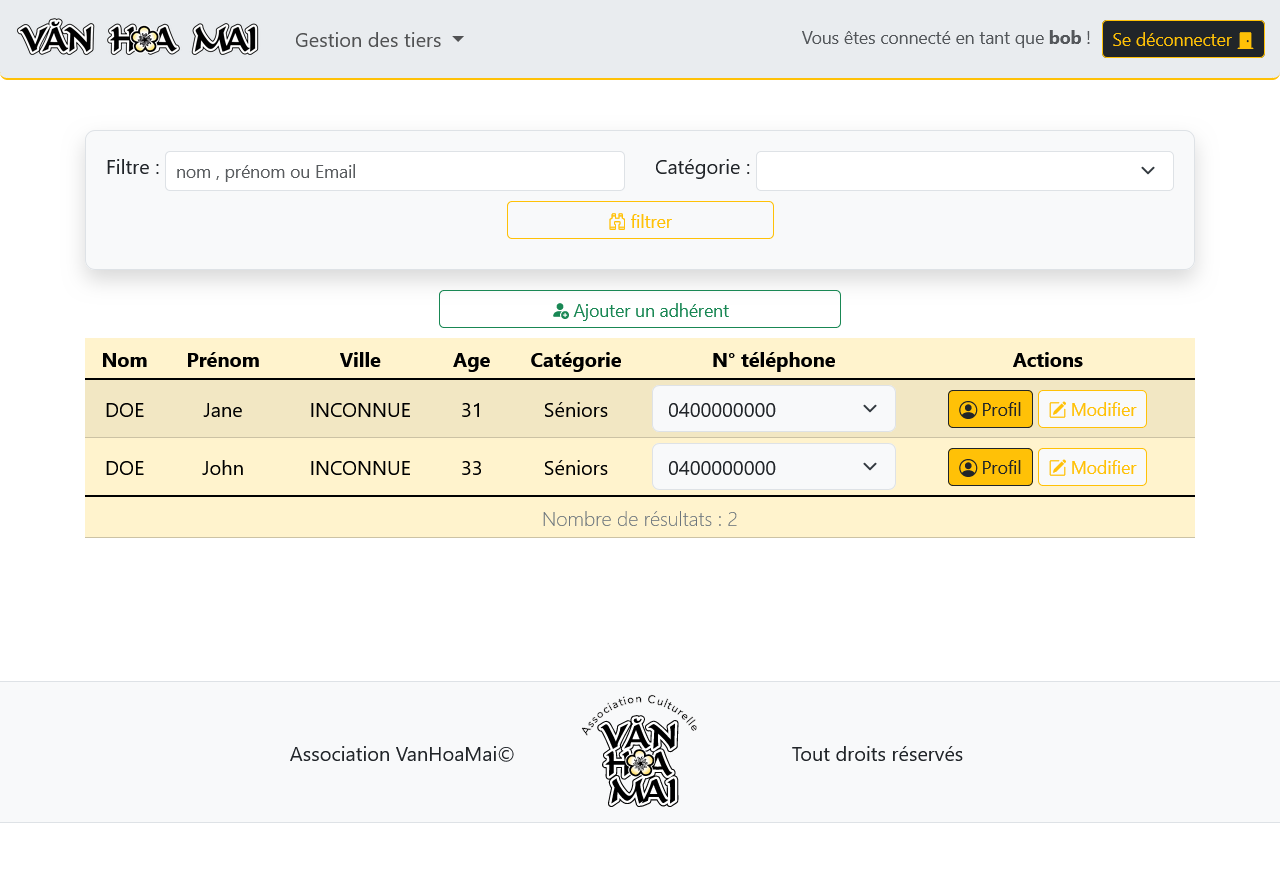 - Création d'une interface de base, pour la saisie d'informations sur les adhérents.