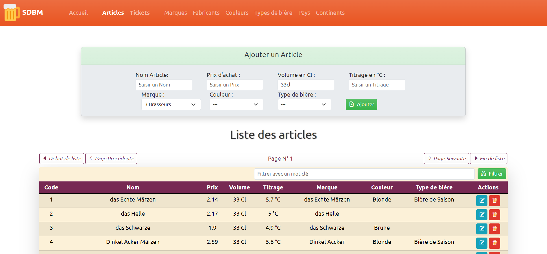 Le projet vise à créer une interface de gestion pour une société grossiste de bières. L’application web et web mobile permettra au client de gérer informatiquement l’activité de vente de bière et les données de ses produits.