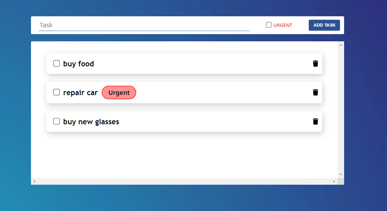 possibilité d'ajouter des tâches, les marquer comme urgentes, les valider comme