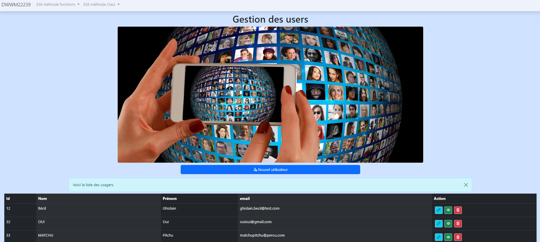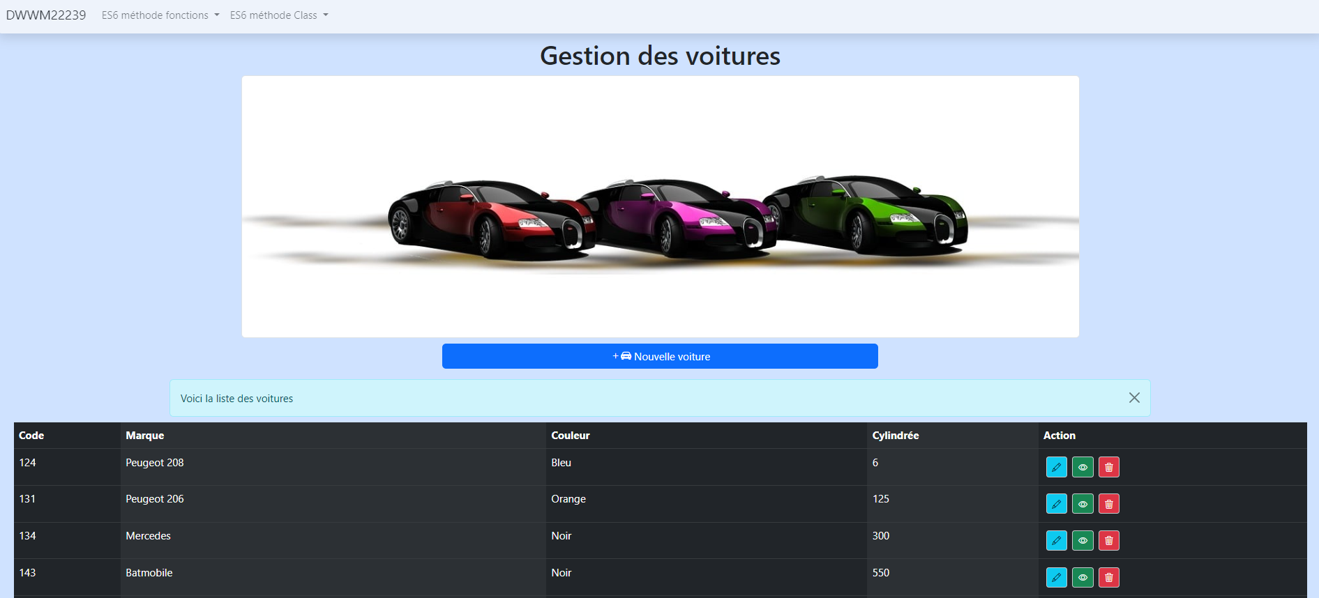 Création d'une classe objet en JavaScript, utilisation de requêtes AJAX et d'une APIRest pour génération de tableaux dynamiques en CRUD.